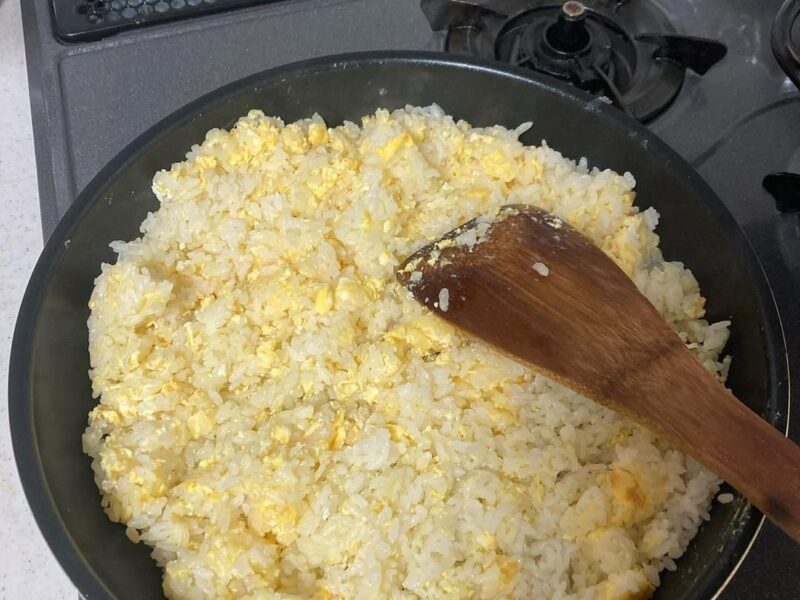 チャーハンと言えば強火なイメージあるかと思いますが、弱火でやると失敗しないチャーハンになります笑