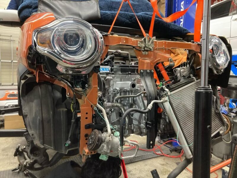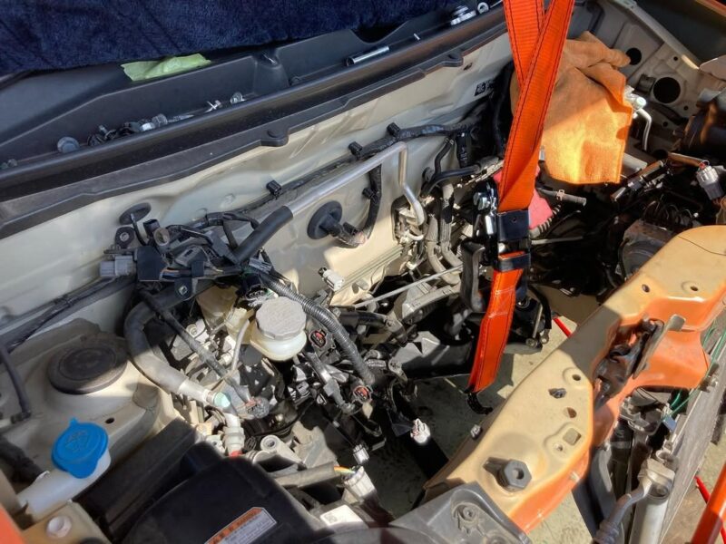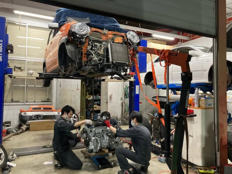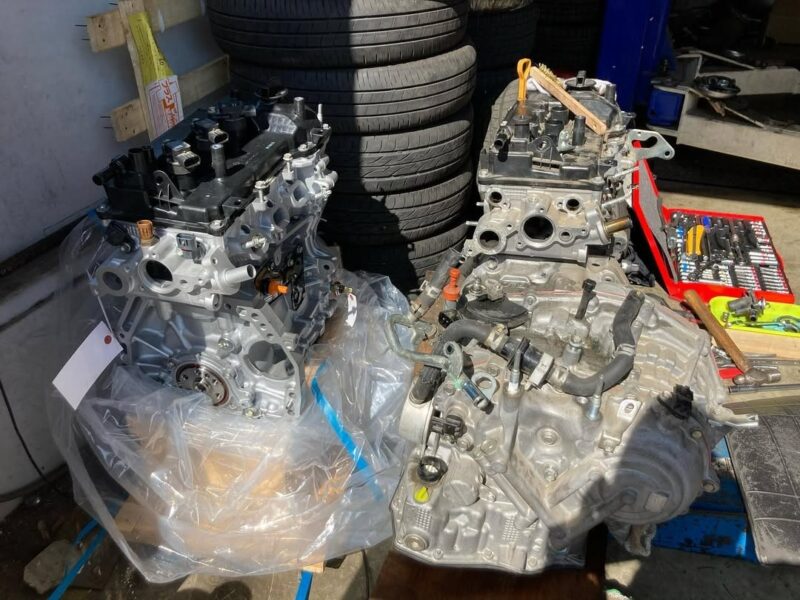 エンジンの載せ換えということで、エンジンを下ろしてから、リビルトエンジンに部品などの付け替えを行なって、新しいエンジンが載っかるまでの流れです。